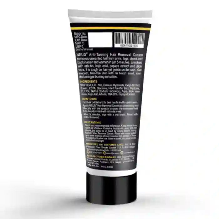 NEUD Anti-Tanning Hair Removal Cream With Kojic Acid, Arbutin, Papaya Extract - 50g