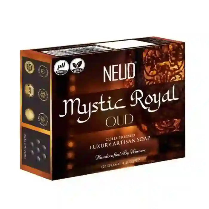 NEUD Mystic Royal Oud Luxury Artisan pH Balanced Cold-Pressed Handmade Soap 125g With Oudh and Gul Banafsha