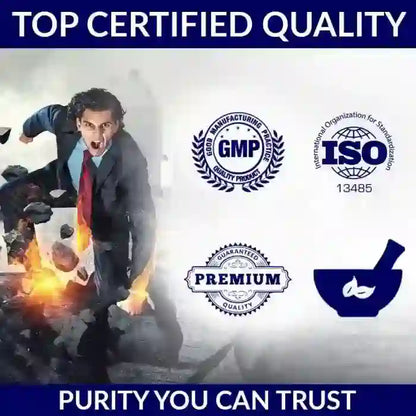 This polyherbo-mineral pharmaceutics is natural, safe, effective and non-habit-forming. It is made at an ISO and GMP-approved government-certified Ayurvedic manufacturing facility.