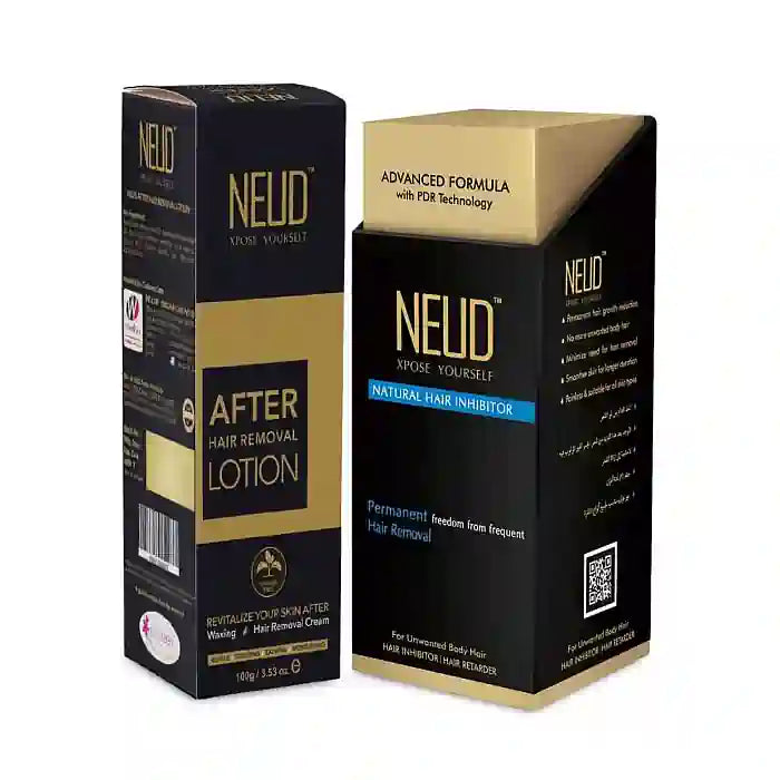 NEUD Combo: Natural Hair Inhibitor and After-Hair-Removal Skin Lotion for Men and Women