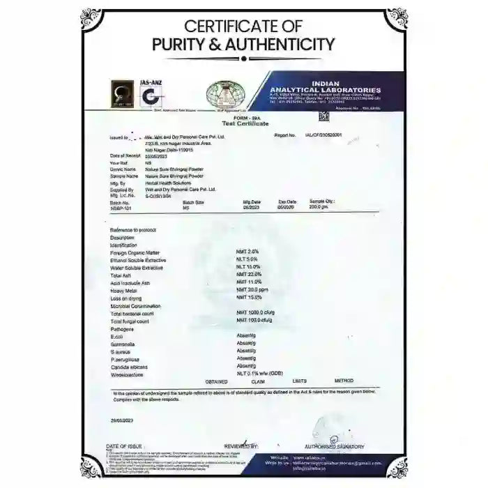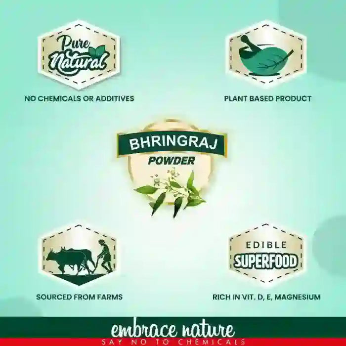Nature Sure Bhringraj Powder is a traditional remedy for hair care sourced directly from farms. It is popularly called Keshraj, or the ruler of hair. It is a time-tested natural hair vitalizer that has been used traditionally for thick and voluminous tresses. This top certified quality product does not contain any chemicals, preservatives, additives or colors. It has been processed and packed at an ISO and GMP certified unit. Its purity and authenticity have been certified by a GLP-approved laboratory.