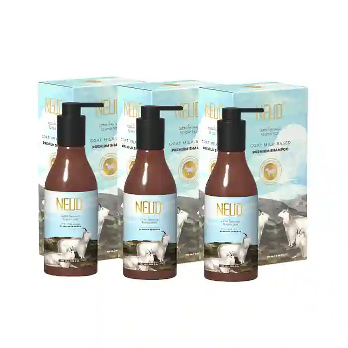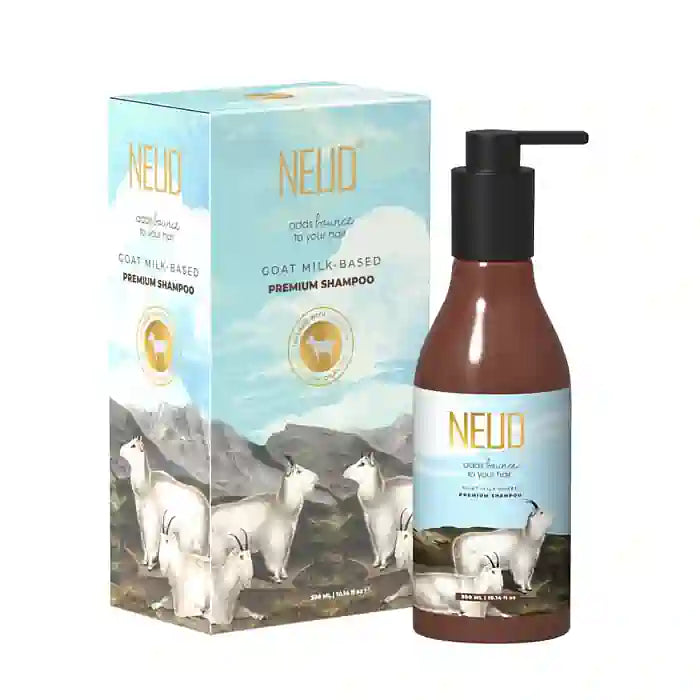 Shampooing is the first step to hair care and choosing the right shampoo determines the overall health of your hair. Make the right decision by using NEUD Goat Milk Premium Shampoo, which gives you a rich lather that moisturizes the scalp deeply and adds shine to your hair.