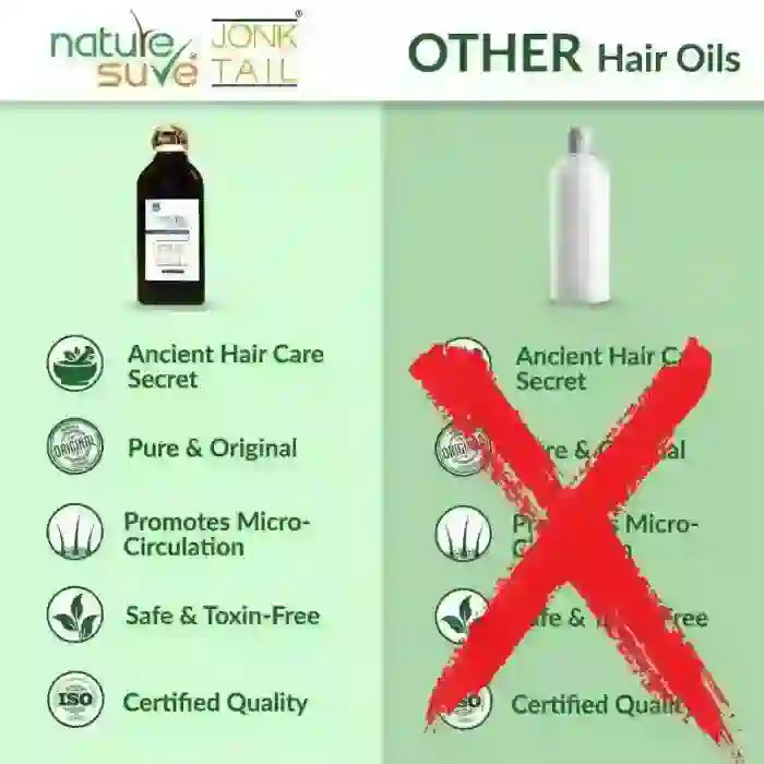 Nature Sure Jonk Tail is a natural and effective hair oil that contains hirudin, a powerful enzyme scientifically proven to promote micro-circulation of blood. Benefits of jonk therapy in hair care are documented in ancient Roman and Egyptian civilizations.