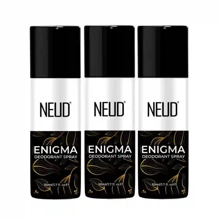 Each pack contains a 50ml bottle of NEUD ENIGMA Body Spray Deodorant.