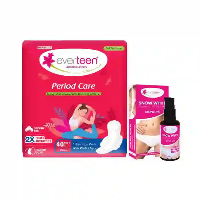 - A super-value combo from everteen, the complete feminine health and hygiene expert, known for its bikini line hair remover, sanitary pads, menstrual cups, panty liners, intimate washes, feminine serums and more