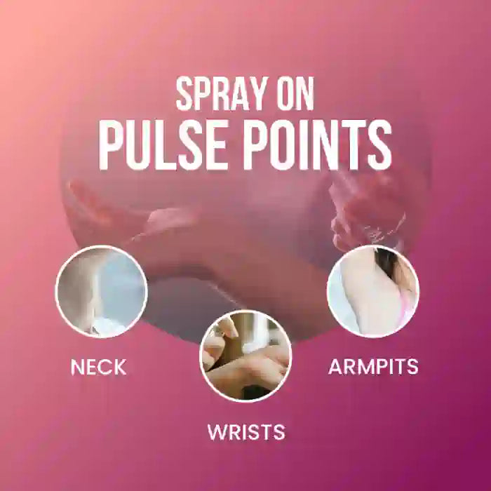 Select the perfume most suited for your occasion or mood. Spray 1-2 spritzes on your pulse points, neck, chest and shoulders from at least 10-15cm away.
