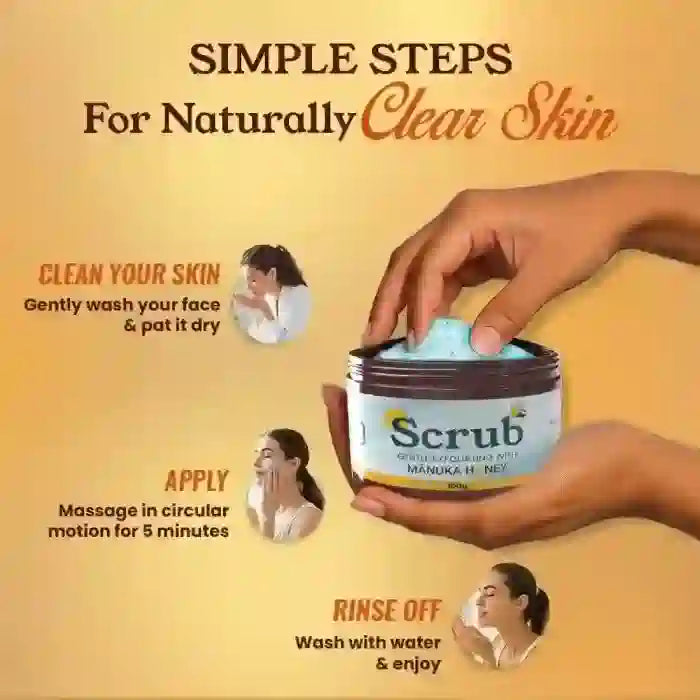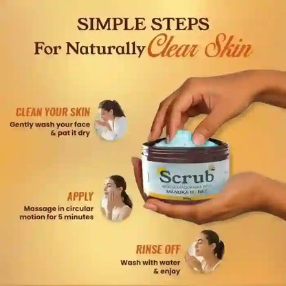 प्राकृतिक रूप से साफ़ त्वचा के लिए मनुका शहद, कोजिक एसिड और अल्फा आर्बुटिन युक्त न्यूड जेंटल एक्सफ़ोलीएटिंग स्क्रब - 100 ग्राम