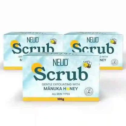 Use NEUD exfoliator scrub once a week for a soft, radiant, even toned and clear skin. Manufactured at a GMP and ISO certified unit, NEUD premium manuka honey scrub is certified quality product that is lab-tested and suitable for all skin types in men and women.