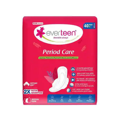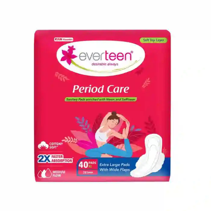 प्रत्येक पैक में नीम और कुसुम से समृद्ध ऐवरटीन पीरियड केयर एक्सएल सॉफ्ट 40 सैनिटरी पैड शामिल हैं।