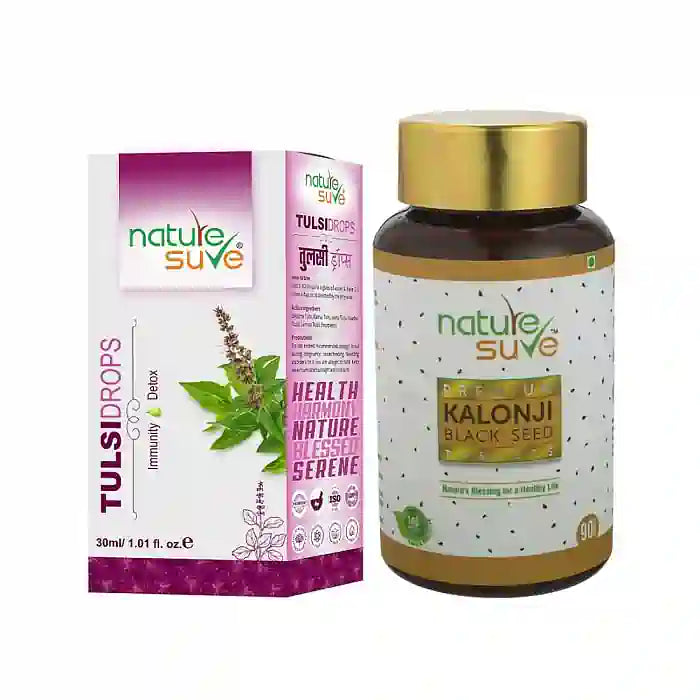 - Get 1 pack of 30ml Nature Sure Tulsi Drops and 1 pack of 90 Nature Sure Kalonji Tablets for Immune Support in this combo