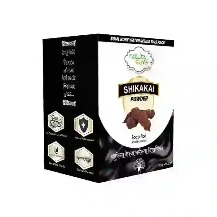 ନେଚର ସିଓର ଶିକାକାଇ ପାଉଡର ହେୟାର କ୍ଲିନଜର ୧୦୦ ଗ୍ରାମ ଗୋଲାପ ଜଳ ୫୦ ମି.ଲି. ସହିତ