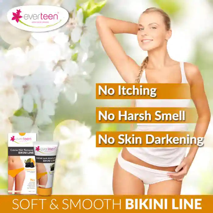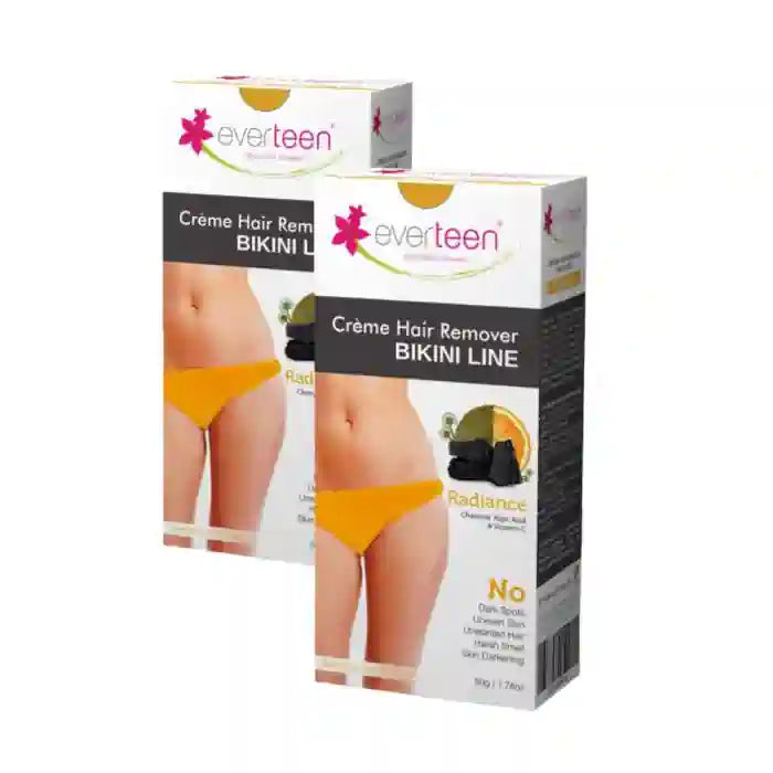 everteen RADIANCE Bikini Line Hair Remover Creme is one of the most effective hair removal products for bikini line, under arms and other sensitive skin areas in women. Every pack contains a 50g tube of everteen RADIANCE Bikini Line Hair Remover Creme, a spatula and two coin-sized towels.