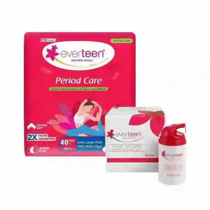 • A super-value combo from everteen, the complete feminine health and hygiene expert, known for its bikini line hair remover, sanitary pads, menstrual cups, panty liners, intimate washes, feminine serums and more