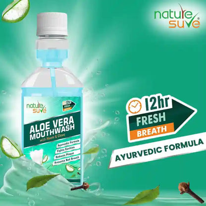 Transform your oral hygiene routine with Nature Sure Aloe Vera Mouthwash with Neem and Clove, a safe and effective Ayurvedic alternative to chemical-based mouthwashes. Crafted from nature's finest ingredients, this mouthwash ensures your mouth stays fresh, healthy, and free from harmful side effects. Perfect for those who seek a natural, sugar-free solution to maintain optimal oral health.