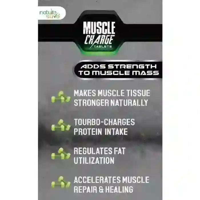 Nature Sure Muscle Charge tablets supply holistic nutrition to give your muscles the real strength. The carefully-balanced blend of high-quality herbs in Nature Sure Muscle Charge builds muscle strength, accelerates tissue repair, provides superior pain relief and builds immunity.