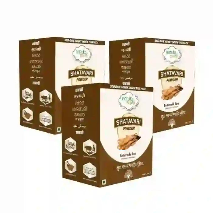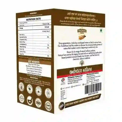 When you buy this pack of Nature Sure Shatavari Powder 100 grams, you also get 50g raw honey, one measuring spoon, and a how-to-use recipe leaflet inside the pack.