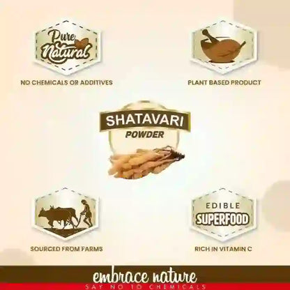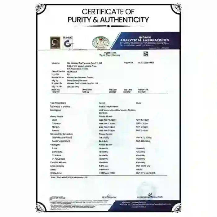 Nature Sure Shatavari Powder is a pure plant-based product sourced directly from farms. This top certified quality product is non-GMO. It does not contain any chemicals, preservatives, additives or colors. It has been processed and packed at an ISO and GMP certified unit. Its purity and authenticity have been certified by a GLP-approved laboratory.