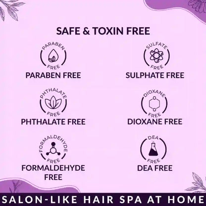This hair spa kit is skin-friendly, soothing, and does not contain any harmful chemicals such as parabens, sulphates, phthalates, formaldehyde, dioxane or DEA.
