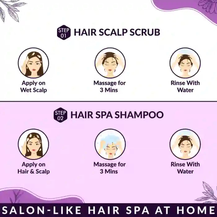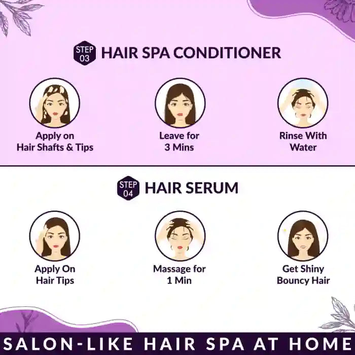 • Each pack includes a sachet of hair scalp scrub, hair spa shampoo, hair spa conditioner, and hair serum