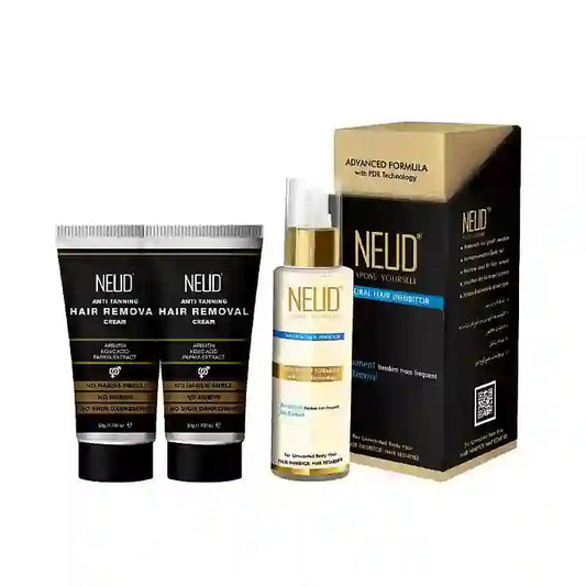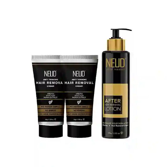 NEUD Anti-Tanning Hair Removal Cream Twin Pack (50g+50g) and After-Hair-Removal Skin Lotion 100g