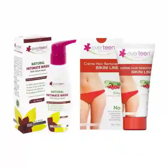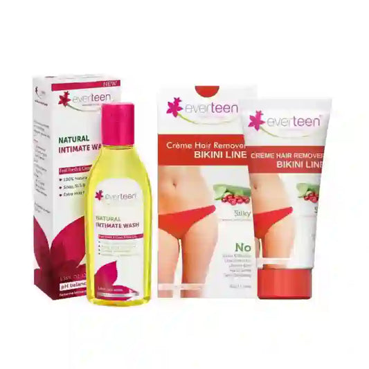 everteen Combo: Bikini Line Hair Removal Creme SILKY and Natural Intimate Wash for Women