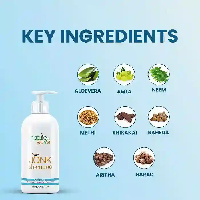 Nature Sure Jonk Shampoo helps cleanse scalp, remove dandruff, prevent infections and deeply nourish hair roots to make hair stronger and healthier. Nature Sure Jonk Shampoo is tough on dirt, grime and fungus, yet powerfully keeps your scalp and hair follicles healthy and nourished.