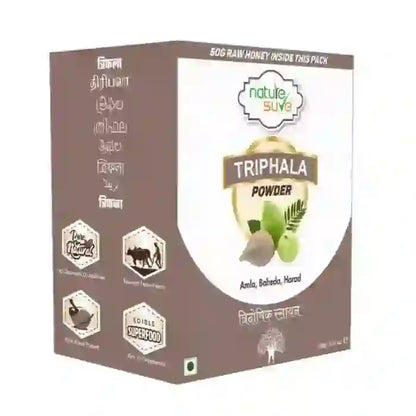 When you buy this pack of Nature Sure Triphala Powder 100 grams, you also get 50g raw honey, one measuring spoon, and a how-to-use recipe leaflet inside the pack.