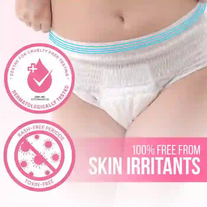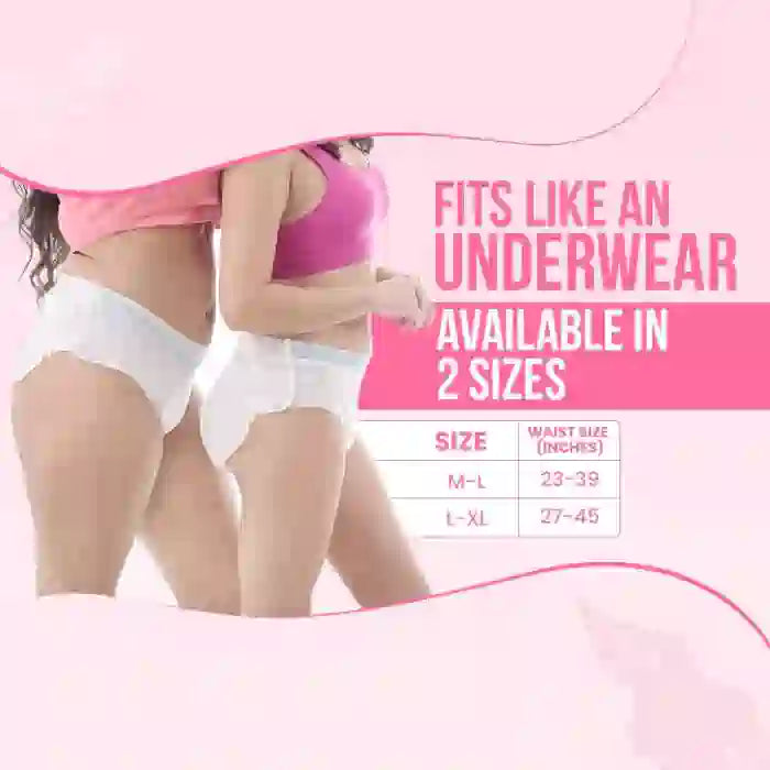 Take a disposable panty from the pack. Put on the period panty as you would your regular underwear. You do not need to wear another panty over it; it fits seamlessly around your waist. The panty offers 360° protection with full back coverage, ensuring no leaks. After use, wrap the panty and dispose of it in a dustbin. Do not flush.