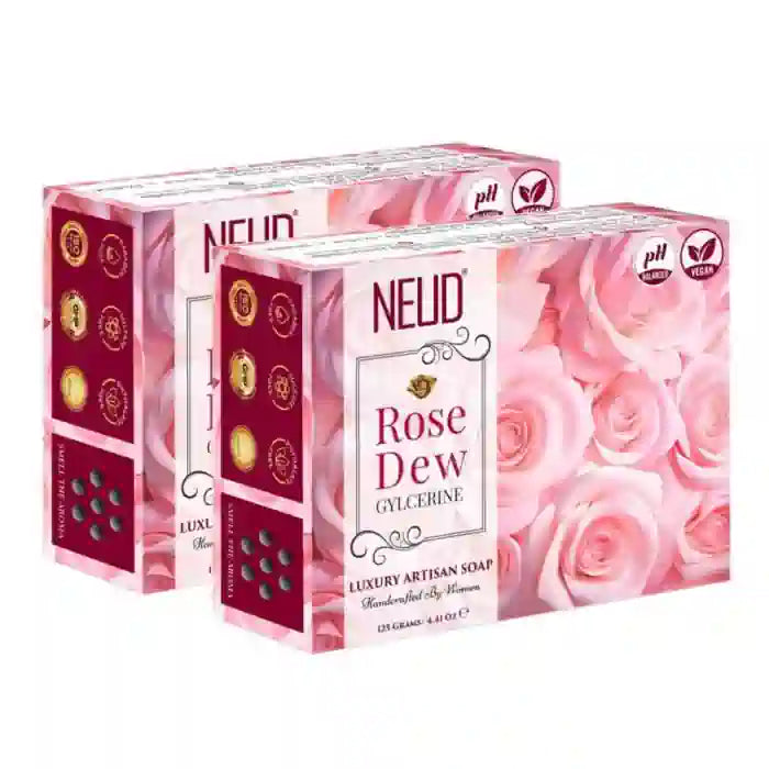 Certified by ISO and GMP standards and Halal, NEUD Rose Dew Glycerine Soap guarantees premium quality and ethical manufacturing practices. Indulge in deep moisturization, gentle exfoliation, and a radiant skin glow with this luxurious soap.